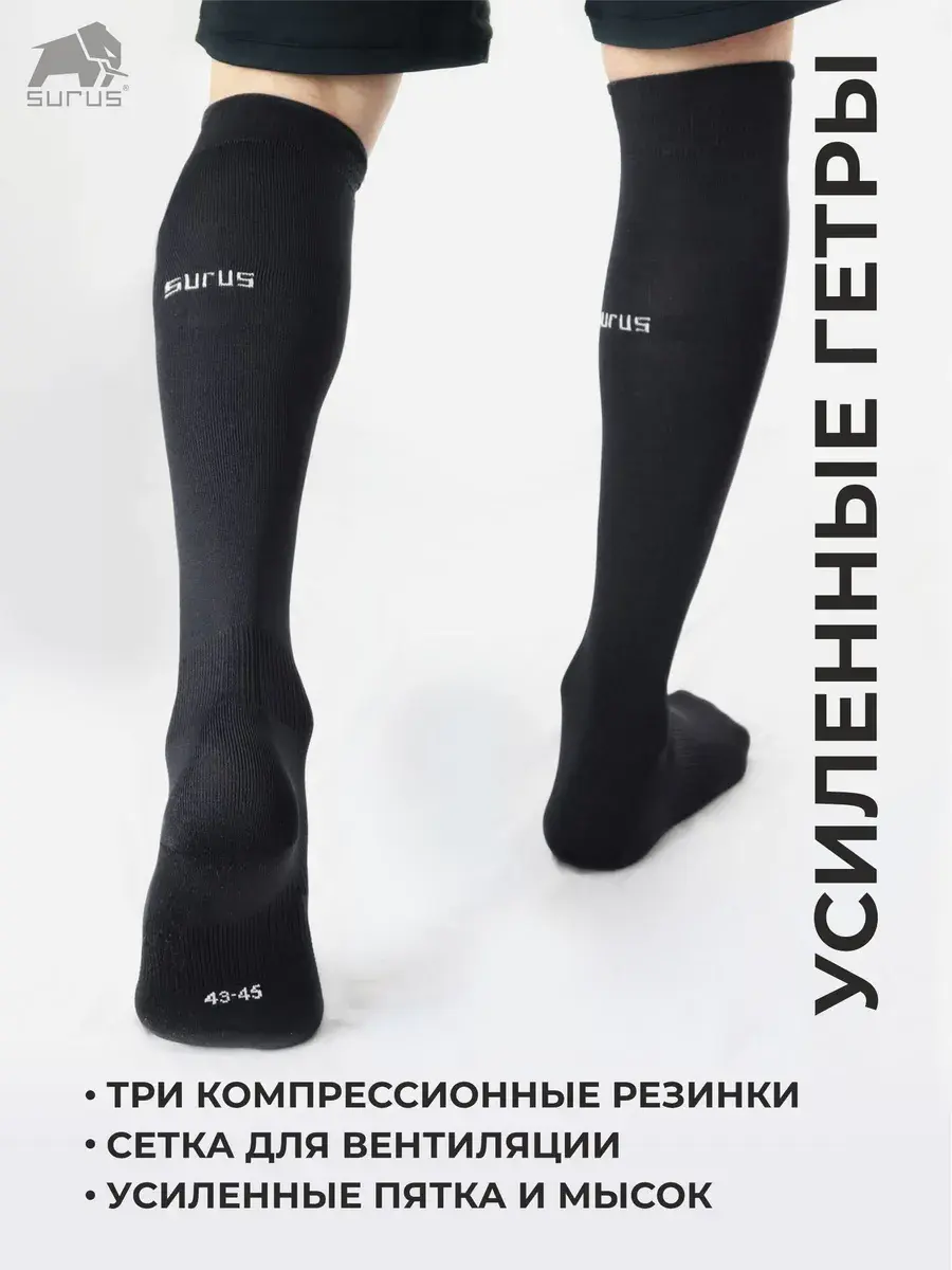 Гетры футбольные с 3 резинками из высококачественных материалов для занятий спортом, игры в футбол и для активного отдыха. Верхняя резинка не тянет, что позволяет регулировать ее подворот. Резинка на щиколотке выполняет сразу две функции: создает компрессию голеностопа, что способствует уменьшению растяжений и вывихов, и не позволяет гетру сползать. Резинка на стопе удерживает ногу. Сетка на стопе способствует лучшей вентиляции и отводит влагу. Широкий размерный ряд позволяет подобрать спортивные гетры как для детей, так и для взрослых.